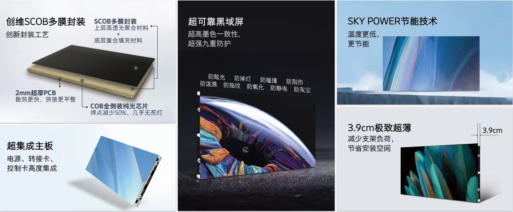 LED显示屏:点间距 1.25mm、刷新率 3840HZ、亮度 800nit、COB 集成封装式,直显面板。(C0B工艺封装技术,R、G、B